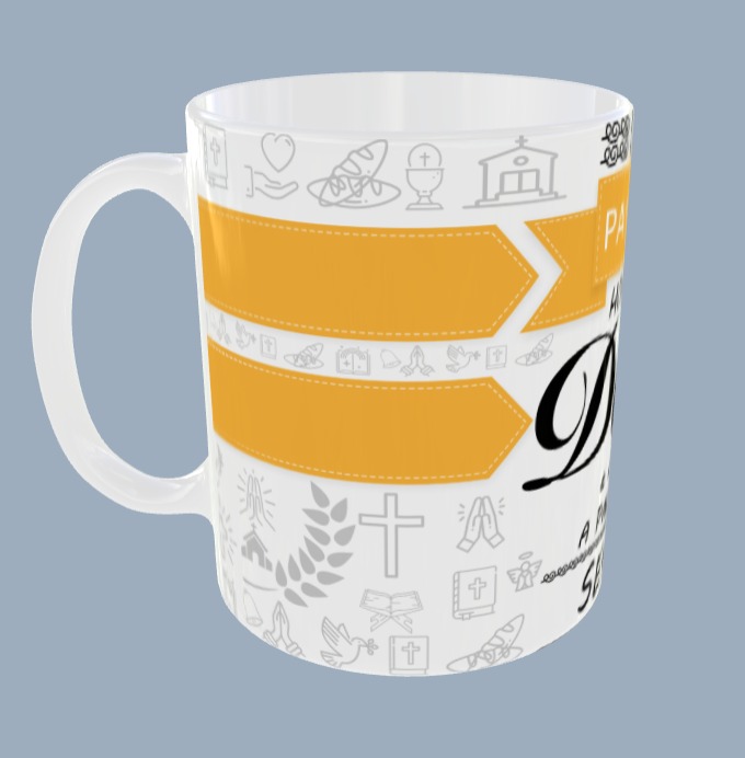 Caneca com capacidade de 325ml, ideal para quem quer uma peça que une praticidade e simbolismo religioso no dia a dia.